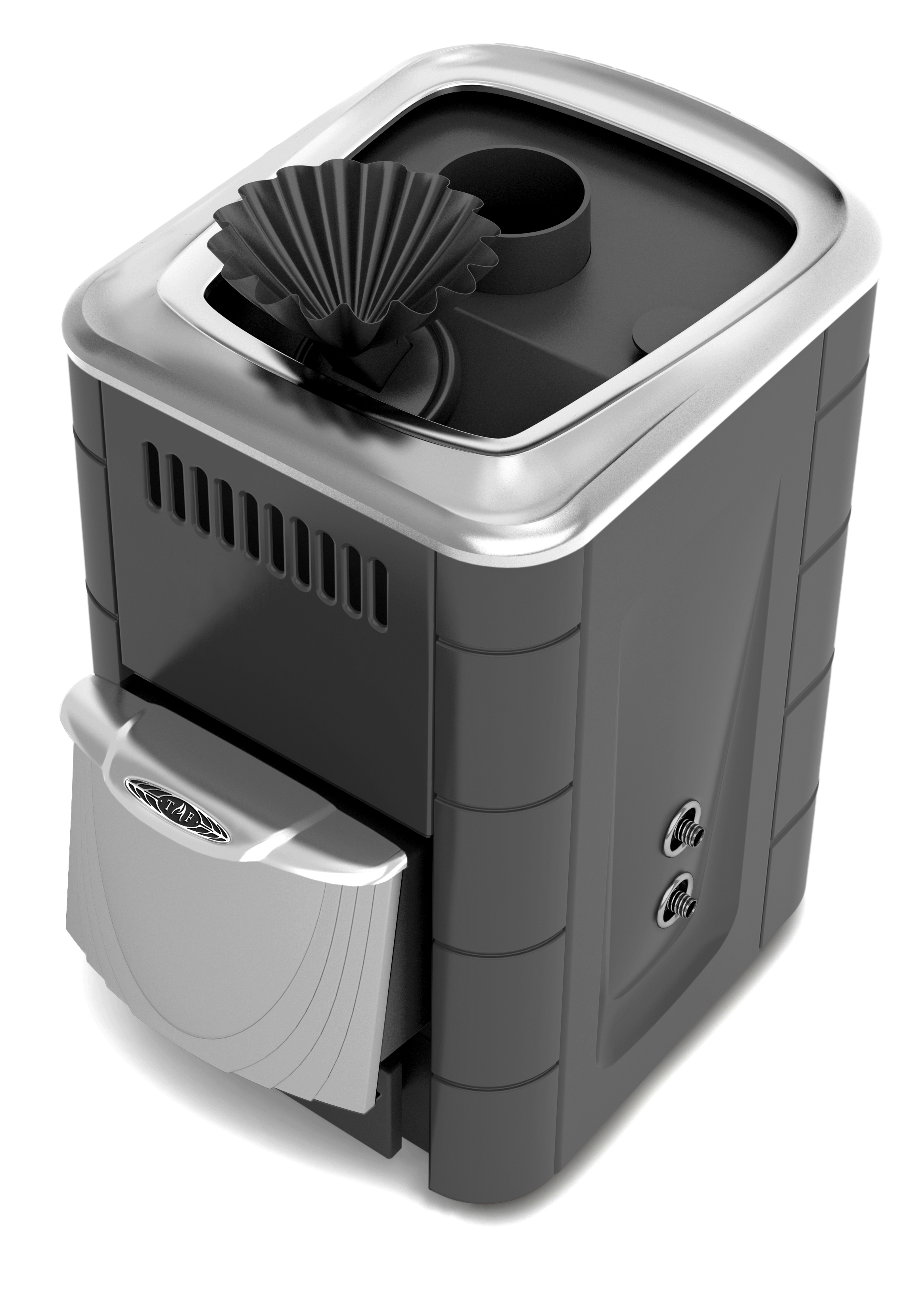 • Компактная воронка с клапаном – дозатором позволяет подавать воду в самую горячую центральную часть закрытой каменки
